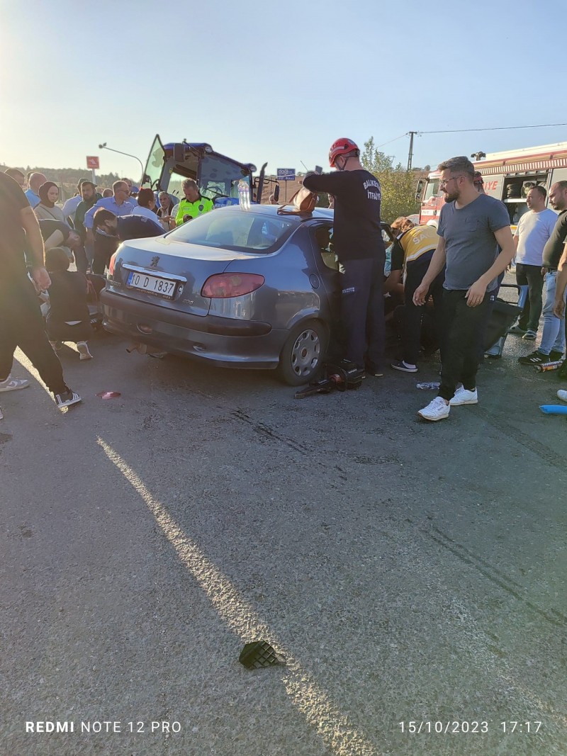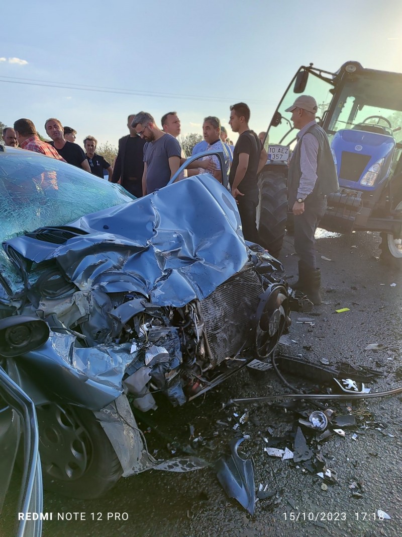 Balıkesir'de meydana gelen trafik kazasında köy yolundan çıkan traktöre ana yolda seyir halinde olan otomobil çarpıştı. Kazada otomobilde bulunan 2 kişi yaralandı.