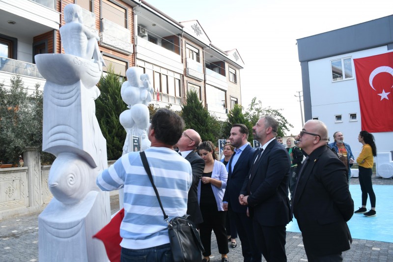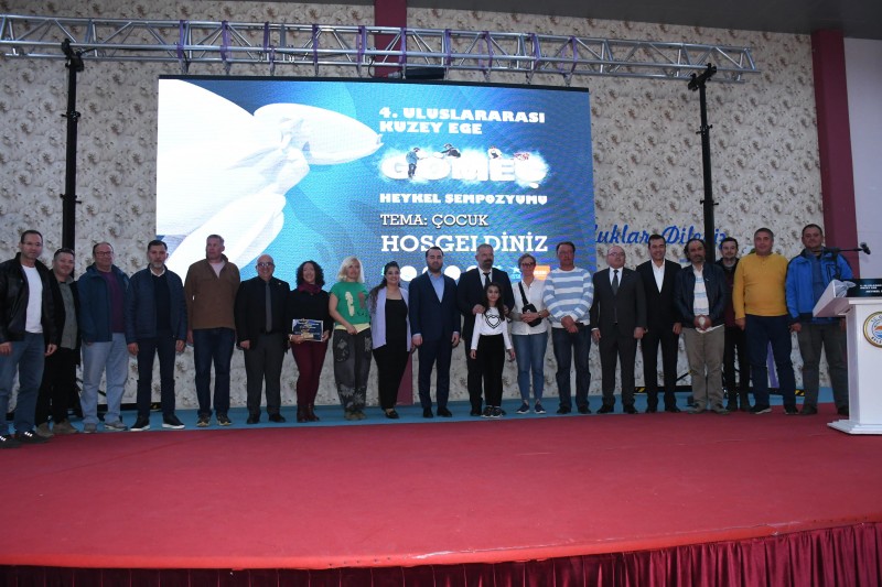 Bu yıl “Çocuk” temasıyla gerçekleştirilen ‘4. Uluslararası Kuzey Ege Gömeç Heykel Sempozyumu’nun kapanış töreni, Nuri Bozyel Kültür Merkezi’nde; eserlerin sergilenmesiyle sona erdi. 6 heykel sanatçısının çocuk temasını farklı şekillerde ele almasıyla ortaya çıkan eserler, sualtına indirilmeden önce bir süre daha sergilenecek.