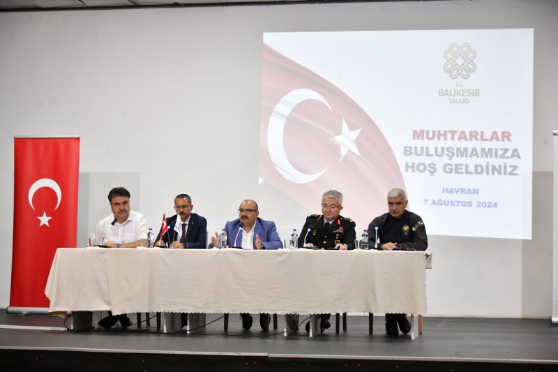 Vali Ustaoğlu Balıkesir’in en özel yaz mahsullerinden biri olan incir hasadının ardından Havran İlçesine bağlı mahallelerin muhtarları ile bir araya geldi. Havran Kültür Merkezi’nde gerçekleştirilen toplantıya Vali İsmail Ustaoğlu’nun yanı sıra İl Jandarma Komutanı Tümg. Nurettin Alkan, Havran Kaymakamı Enver Özderin, İl Emniyet Müdürü Hasan Yiğit, Havran Belediye Başkanı Emin Ersoy, kamu kurumlarının müdürleri, muhtarlar ve ilgililer katıldı.