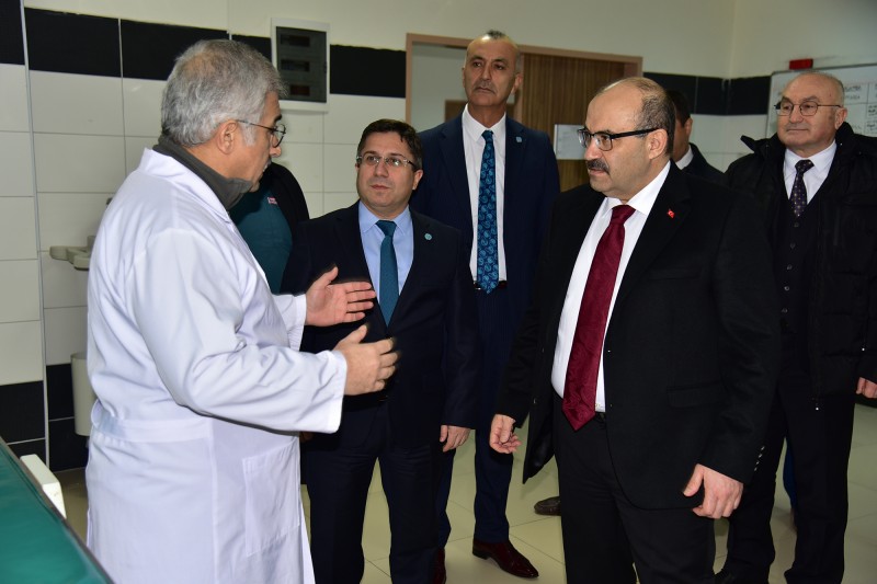 Vali Ustaoğlu sonrasında Veteriner Fakültesi bünyesinde faaliyet gösteren ve yılda yaklaşık 3000’e yakın çeşitli türdeki evcil ve yabani hayvanların ayakta muayene ve tedavisinin yapıldığı, bölge hayvancılığının gelişmesinde öncü rol üstlenen Hayvan Hastanesini ziyaret ederek verilen hizmetler hakkında Veteriner Fakültesi Dekan V. Prof. Dr. Ziya İlhan ve Başhekim Prof. Dr. Şükrü Metin Pancarcı ile akademisyenlerle görüştü.