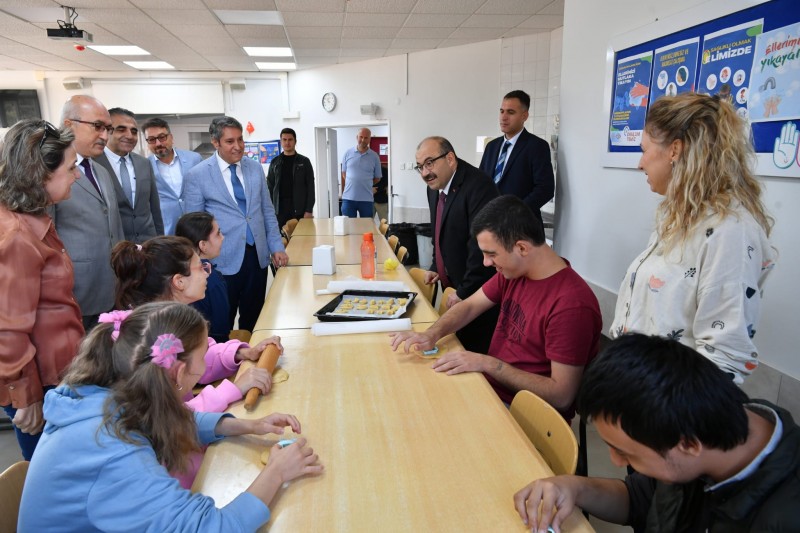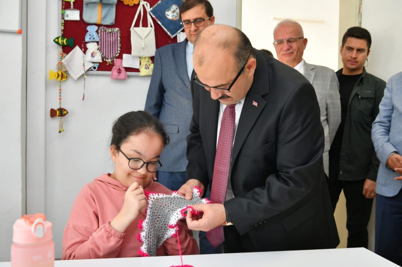 Vali Ustaoğlu program kapsamında Firdevs Hattatoğlu Özel Eğitim Meslek Okulu ve İl Özel İdare Özel Eğitim Uygulama Okulu’nu ziyaret etti. Öğrencilerle yakından ilgilenen Ustaoğlu, İl Milli Eğitim Müdürü Ali Tatlı'nın da hazır bulunduğu ziyarette okulun eğitim süreci ile ilgili bilgi aldı. Vali Ustaoğlu özel öğrencileri sosyal hayata kazandırmak için emek, sabır ve fedakârlık gösteren eğitimcilere ve velilere teşekkür etti. (Balıkesir Valiliği)