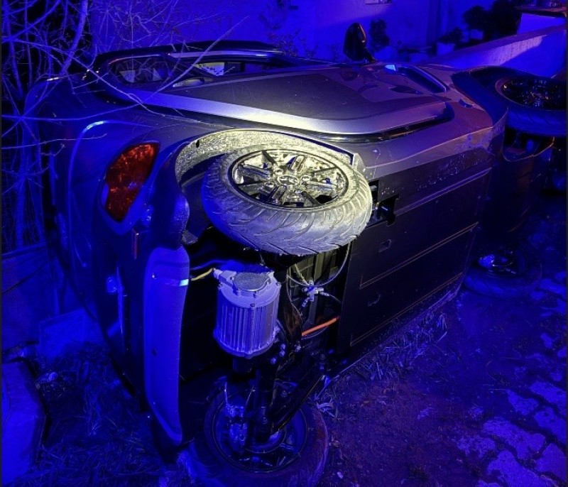Balıkesir'in Bandırma ilçesinde yan yatan elektrikli otomobil sürücüsü yaralandı.