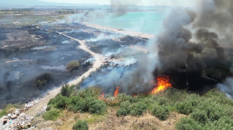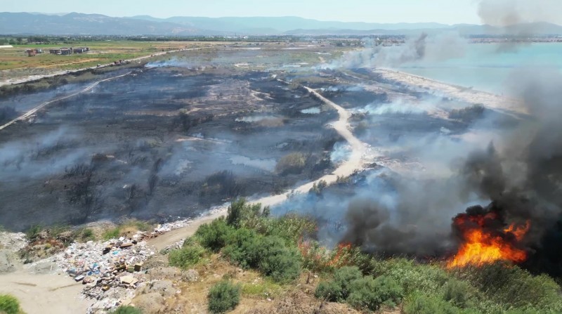 Balıkesir'in Edremit ilçesinde kuşların göç yolundaki sazlık alanda 3 ayrı noktada çıkan yangın, itfaiyenin müdahalesiyle yaklaşık 3 saatlik bir çalışma sonrasında kontrol altına alındı. Yangın anı ve sonrası dron ile havadan görüntülendi. Yanan sazlık alan yangından öncede dron ile havadan böyle görüntülendi.