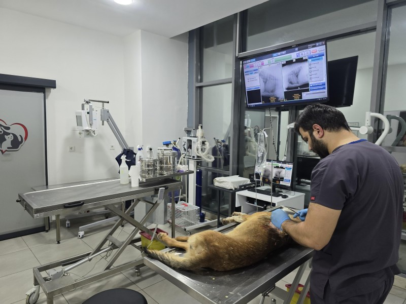 Yaralı köpek, Balıkesir Büyükşehir Belediyesi Bandırma Sokak Hayvanları Tedavi Merkezi'ne nakledilerek tedavi altına alındı. Gerçekleştirilen röntgen ve radyolojik incelemeler sonucunda, ateşli silahtan çıkan merminin köpeğin vücuduna girip çıktığı, vücutta mermi çekirdeği tespit edilmediği belirlendi ve kanamanın ciddi boyutlara ulaştığı görüldü. Veteriner hekimler, hemen cerrahi müdahale yaparak köpeğin sırt bölgesindeki yaraları temizledi ve hasar gören dokuları dikti. Bu hassas operasyon, köpeğin sağlığına kavuşabilmesi için önemli bir adım oldu.