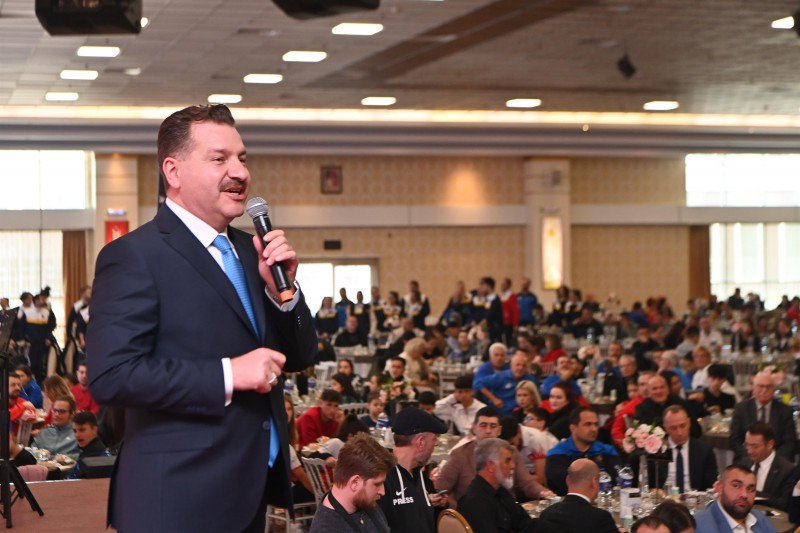 Sporcudan antrenörüne hakeminden kulüp yöneticisine kadar herkesi selamlayarak konuşmasına başlayan Başkan Yılmaz, “Balıkesir Büyükşehir Belediyesi olarak, Valiliğimizle müdürlüklerimizle sporcularımızı ayırmadan ayrıştırmadan nasıl destek oluruz diye hep düşündük. Bunları yaparken şucu bucu demeden, büyük ilçe küçük ilçe diye ayrım yapmadan branş fark etmeksizin bütün kulüplere, bireysel sporculara, Büyükşehir Belediyesi olarak büyük destekler verdik.