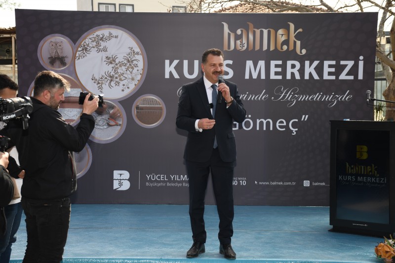Hobileri mesleğe dönüştüren, ev hanımlarının aile ekonomisine katkı sunmasını sağlayan Büyükşehir Belediyesi Balıkesir Mesleki Eğitim Kursları (BALMEK), Gömeç’teki yeni yerinin açılışını gerçekleştirdi. 1 idari ofis ve kurs faaliyetlerinin gerçekleştirildiği 4 adet ofisten oluşan BALMEK’in açılışına Balıkesir Büyükşehir Belediye Başkanı Yücel Yılmaz’ın yanı sıra; AK Parti Genel Başkan Yardımcısı Belgin Uygur, MHP Balıkesir Milletvekili Ekrem Gökay Yüksel, kaymakamlar, MHP İl Başkanı Niyazi Tunç, AK Parti Gömeç İlçe Başkanı Eşref Uslu, MHP Gömeç İlçe Başkanı Muammer Birdar, ilçe milli eğitim müdürleri, kursiyerler, eğitmenler ve vatandaşlar katıldı.