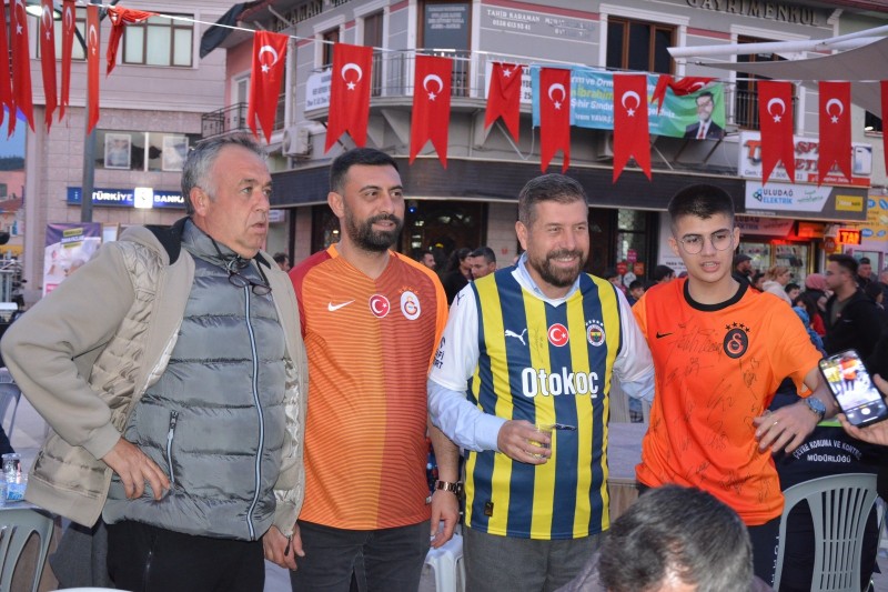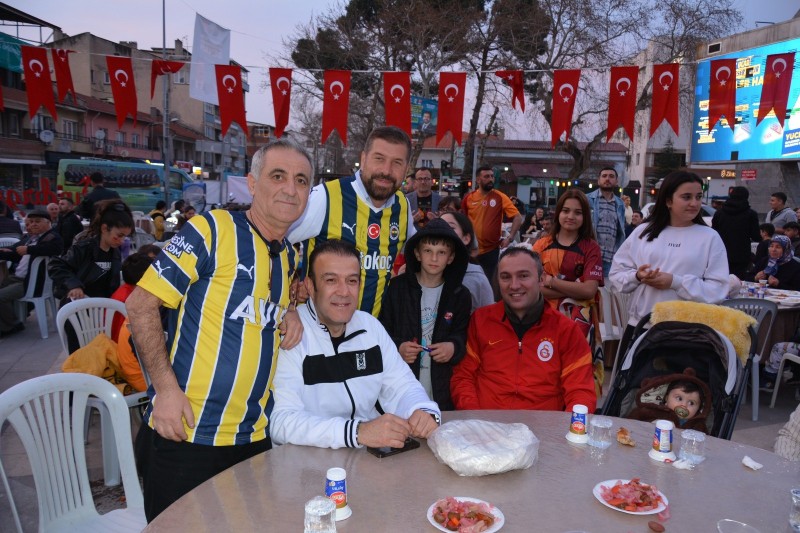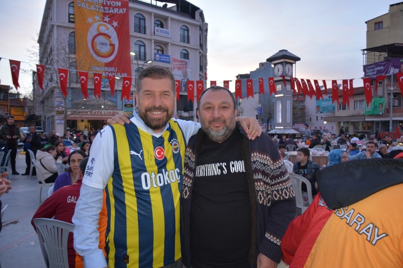 Fenerbahçe forması ile dostluk örneğine ortak olan Sındırgı Belediye Başkanı Ekrem Yavaş, “İşte güzellik bu. Herkes formasını giyip buraya iftara katıldı. Bizler de buradayız. Ebedi dostluk, ezeli rekabet her zaman bu ülkede kazanan olacaktır” şeklinde konuştu.