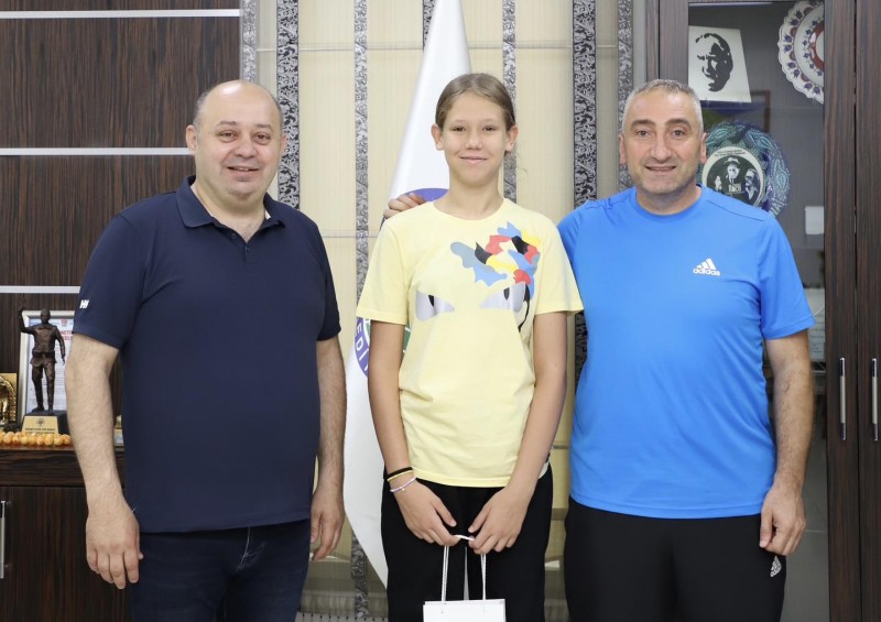 Voleybolcu Suden Defne Kaçan Gönen Belediye Başkanı İbrahim Palaz'ı ziyaret etti.