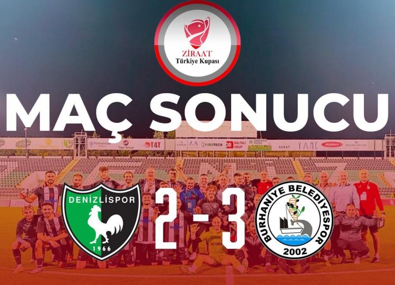 Denizli Atatürk Stadı'nda oynanan Ziraat Türkiye Kupası 2. tur maçında Burhaniye Belediyespor, TFF 2. Lig ekibi Denizlispor'u deplasmanda 3-2 mağlup etti.