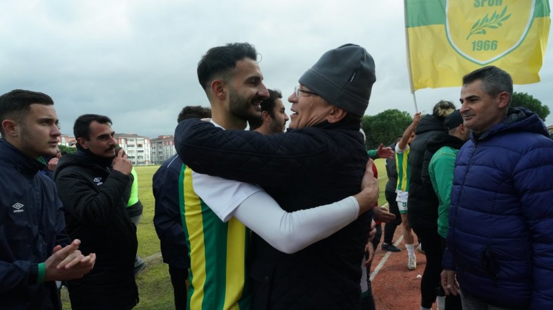 Maçın sonunda Belediye Başkanı Arslan ve Kulüp Başkanı Çelebi oyuncular ve teknik kadro ile beraber galibiyeti kutladı.( Ebru Erdem)