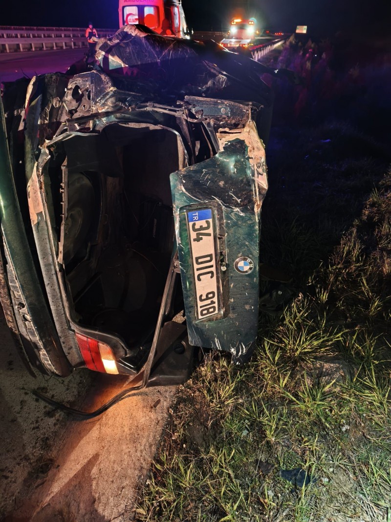 Edinilen bilgiye göre, otoyolda meydana gelen tek taraflı ve sıkışmalı trafik kazasına ekipler sevk edildi. Olay yerine ulaşan ekipler araç içerisinde sıkışan A.F.E. isimli vatandaşı bulunduğu yerden çıkardı. Yapılan kontrollerde şahsın hayatını kaybettiği belirlendi.